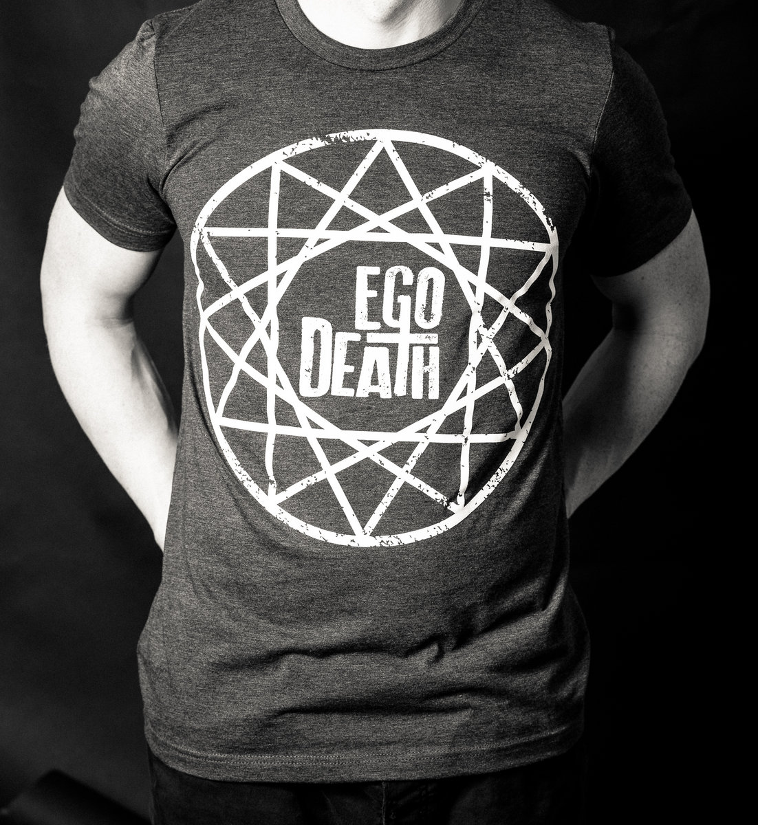 Ego Death Logo on Bella + Canvas Brand 50/50 shirts. Super soft and comfortable.
