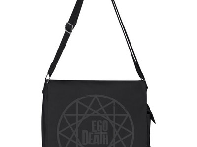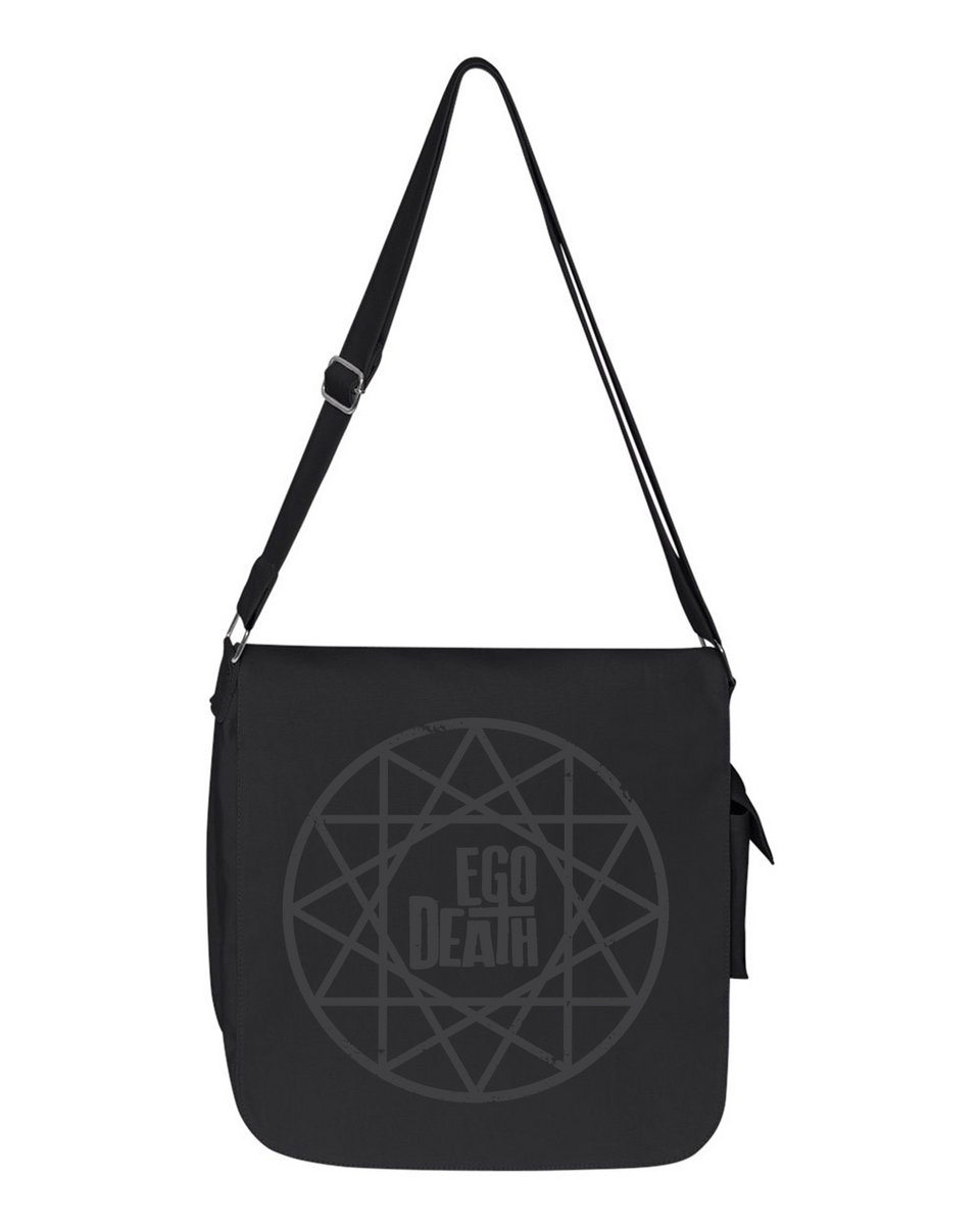 Ego Death logo printed in Dark Grey on a stylish black messenger bag